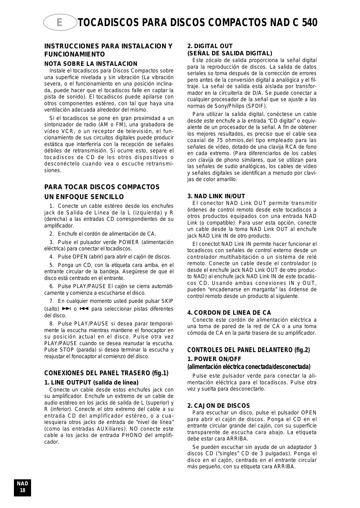 Encuentra gratis el manual del aparato C540 NAD en formato PDF.