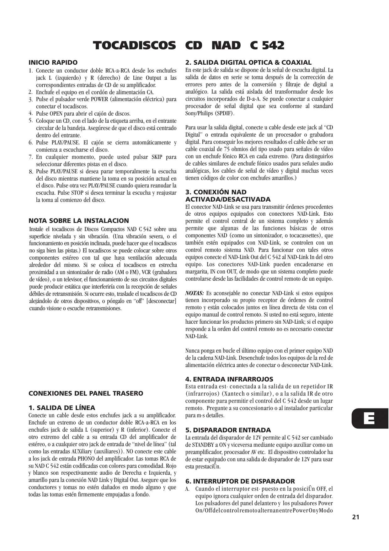 Encuentra gratis el manual del aparato C542 NAD en formato PDF.