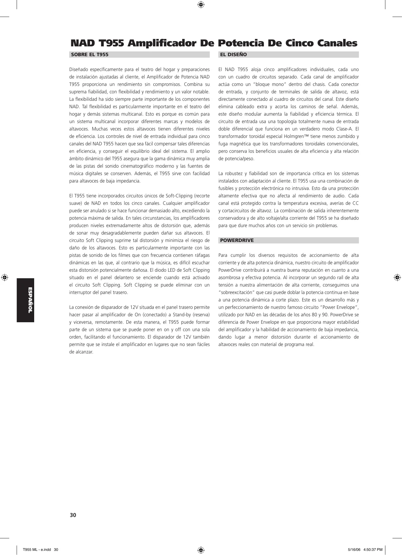 Encuentra gratis el manual del aparato T955 NAD en formato PDF.