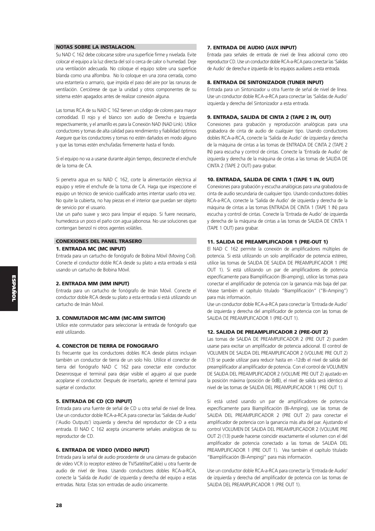 C162 - Preamplificador de audio NAD - Manual de uso y guía de instrucciones gratis