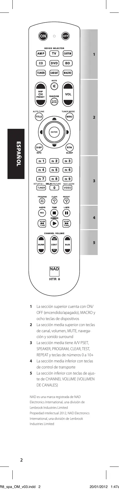 Encuentra gratis el manual del aparato HTR8 LEARNING REMOTE CONTROL NAD en formato PDF.
