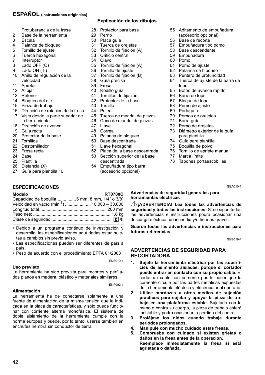 RT0700C - Enrutador MAKITA - Manual de uso y guía de instrucciones gratis