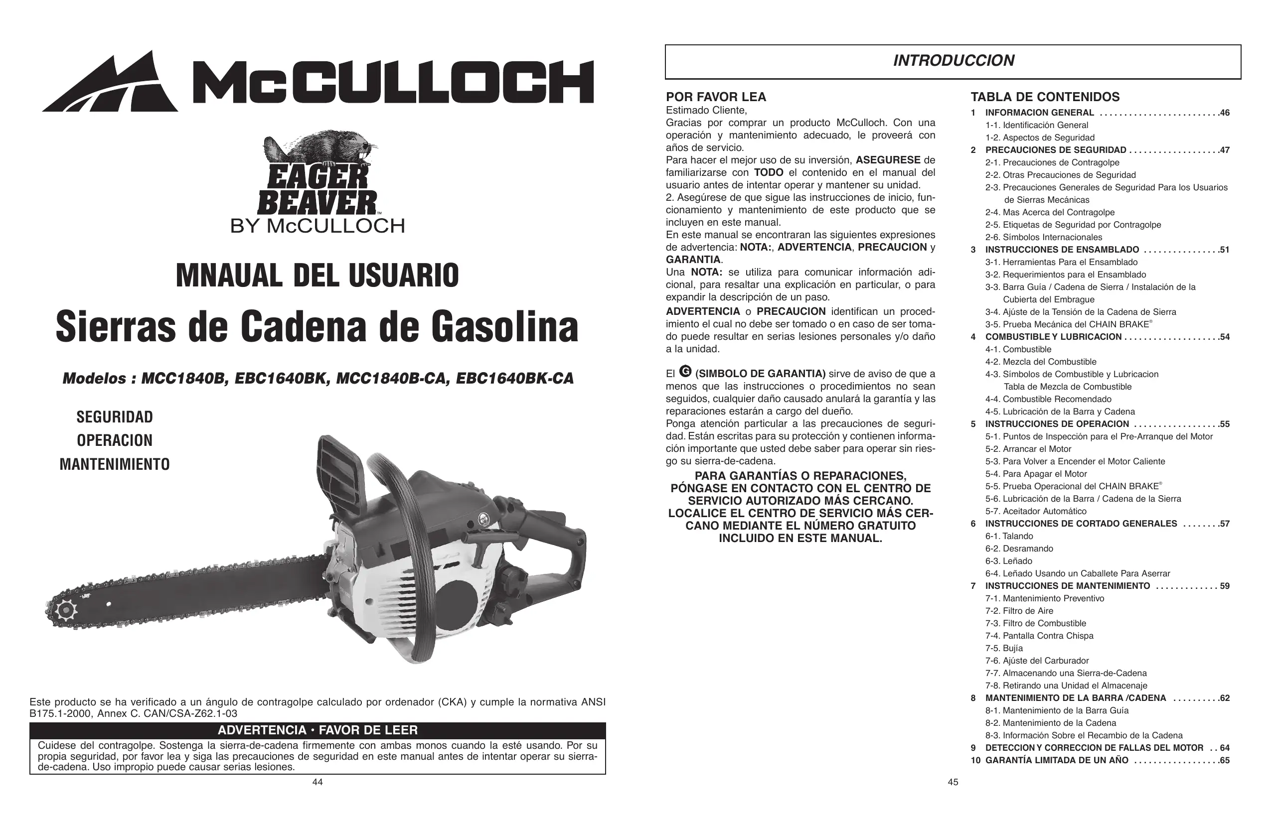 MANUAL DE USUARIO MCC1840BK-CA MCCULLOCH