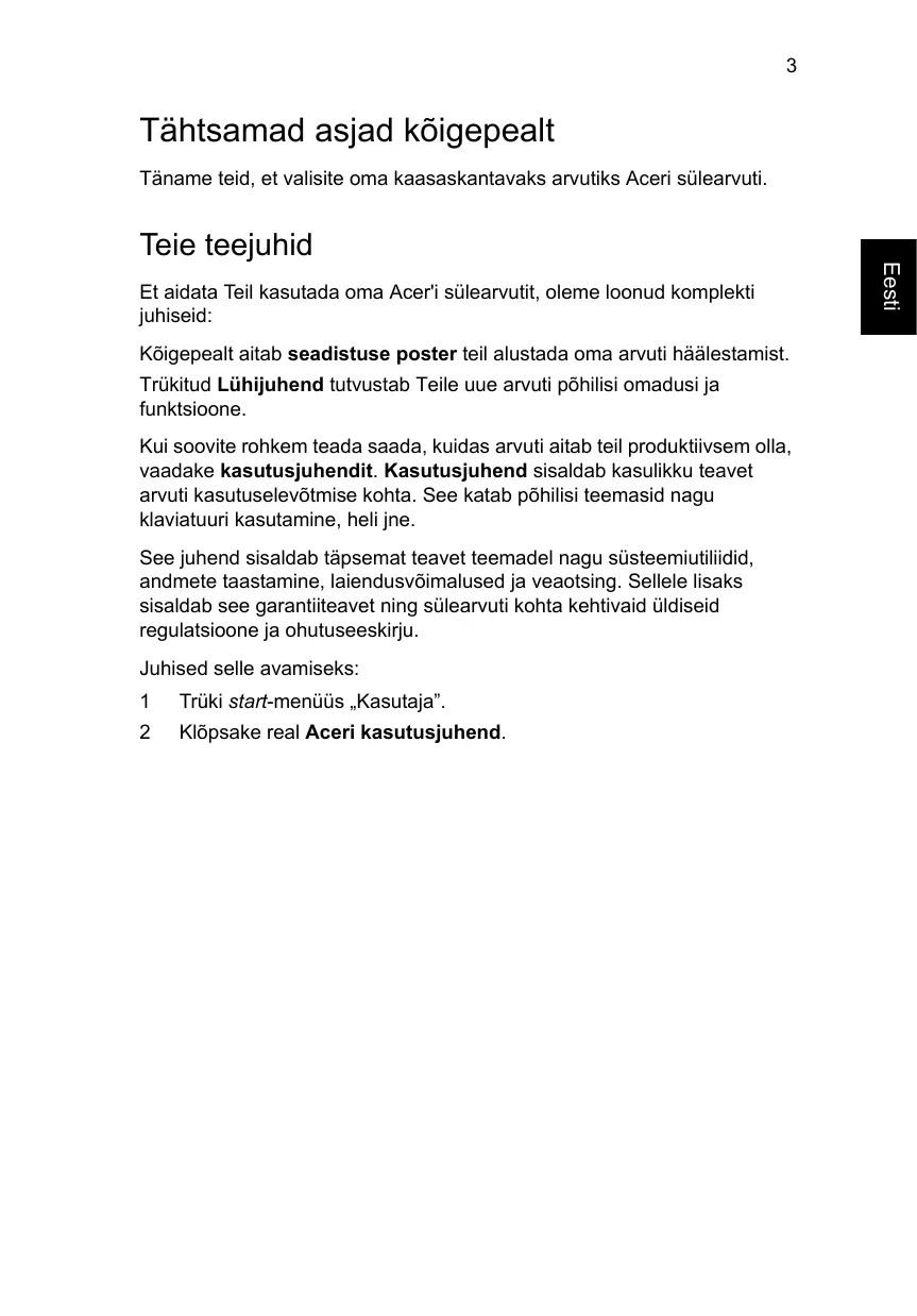 Laadige alla juhend oma Sülearvuti PDF-formaadis tasuta! Leidke oma juhend TRAVELMATE P643-V - ACER ja võtke oma elektrooniline seade uuesti kätte. Sellel lehel on avaldatud kõik teie seadme kasutamiseks vajalikud dokumendid. TRAVELMATE P643-V kaubamärgi ACER.