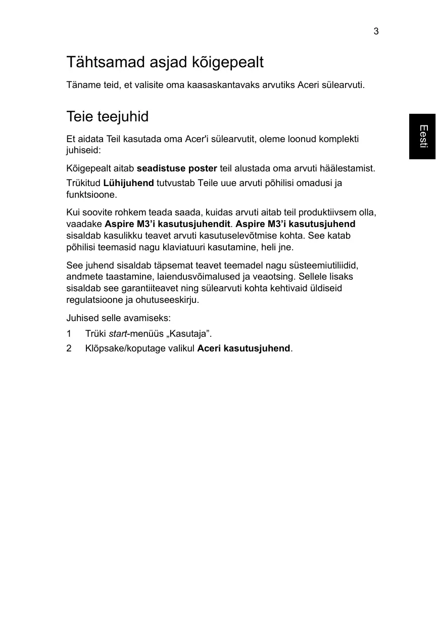 KASUTUSJUHEND ASPIRE M3-580G ACER