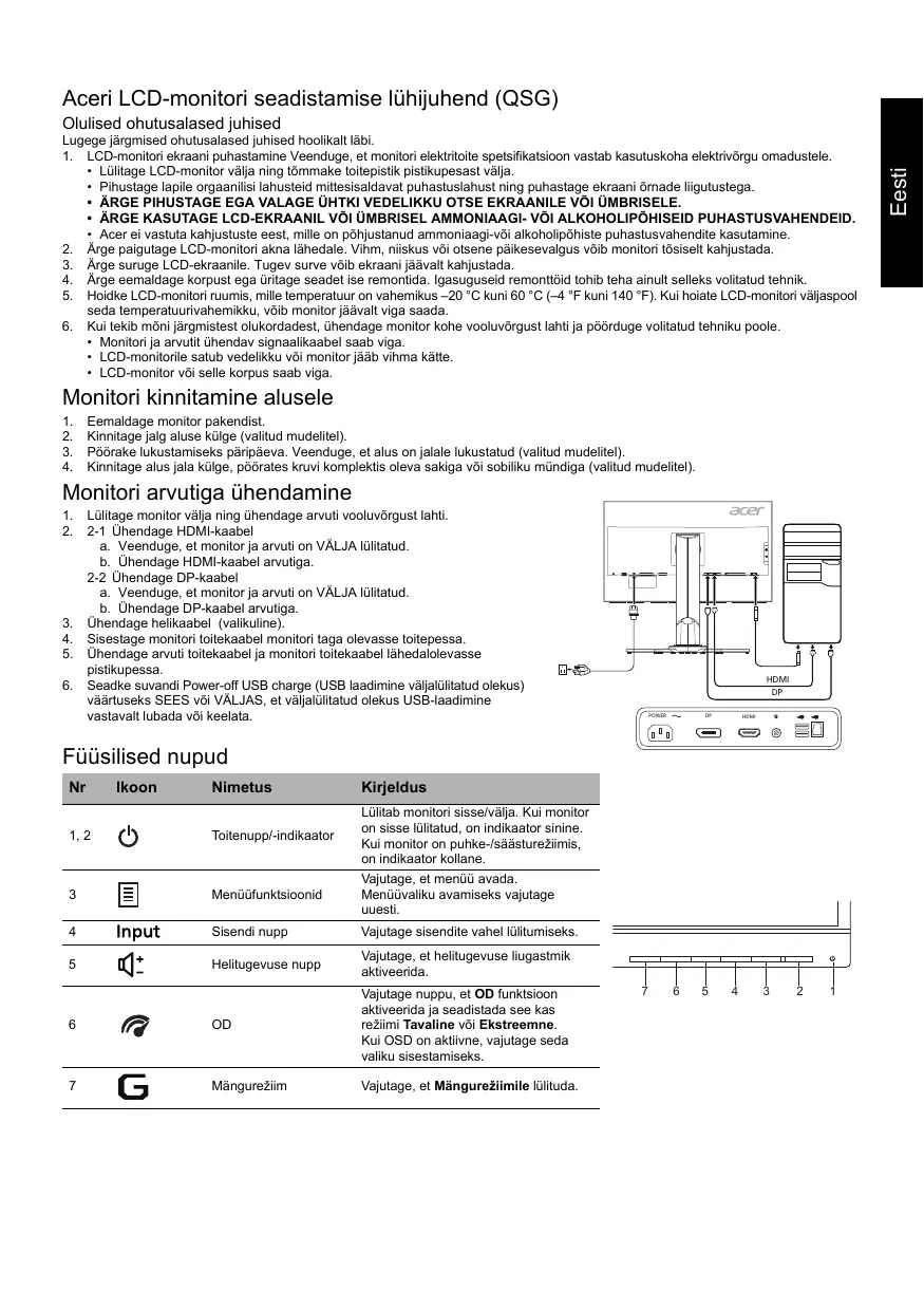XB271HU - Mängumonitor ACER - Tasuta kasutusjuhend