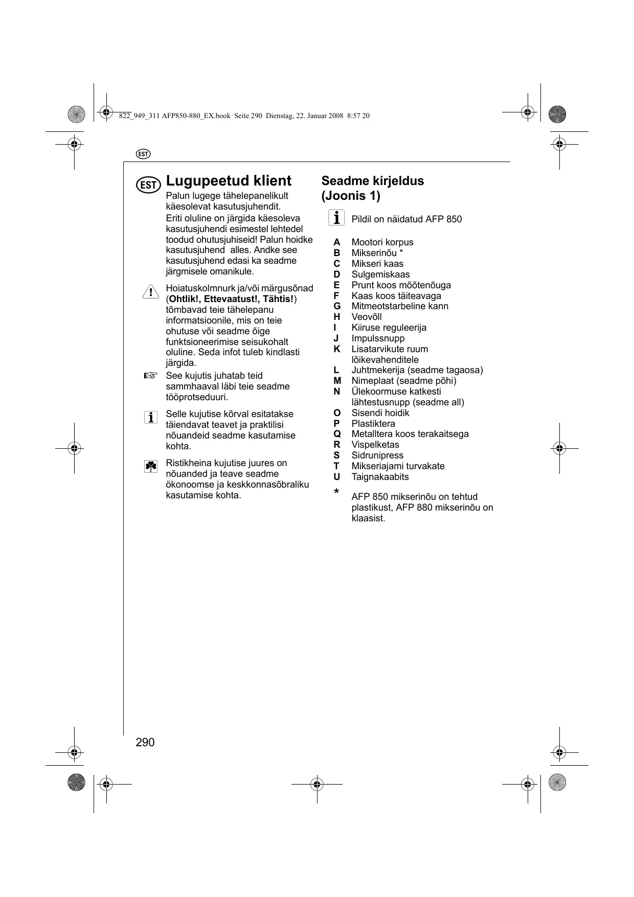 KASUTUSJUHEND AFP850 AEG-ELECTROLUX