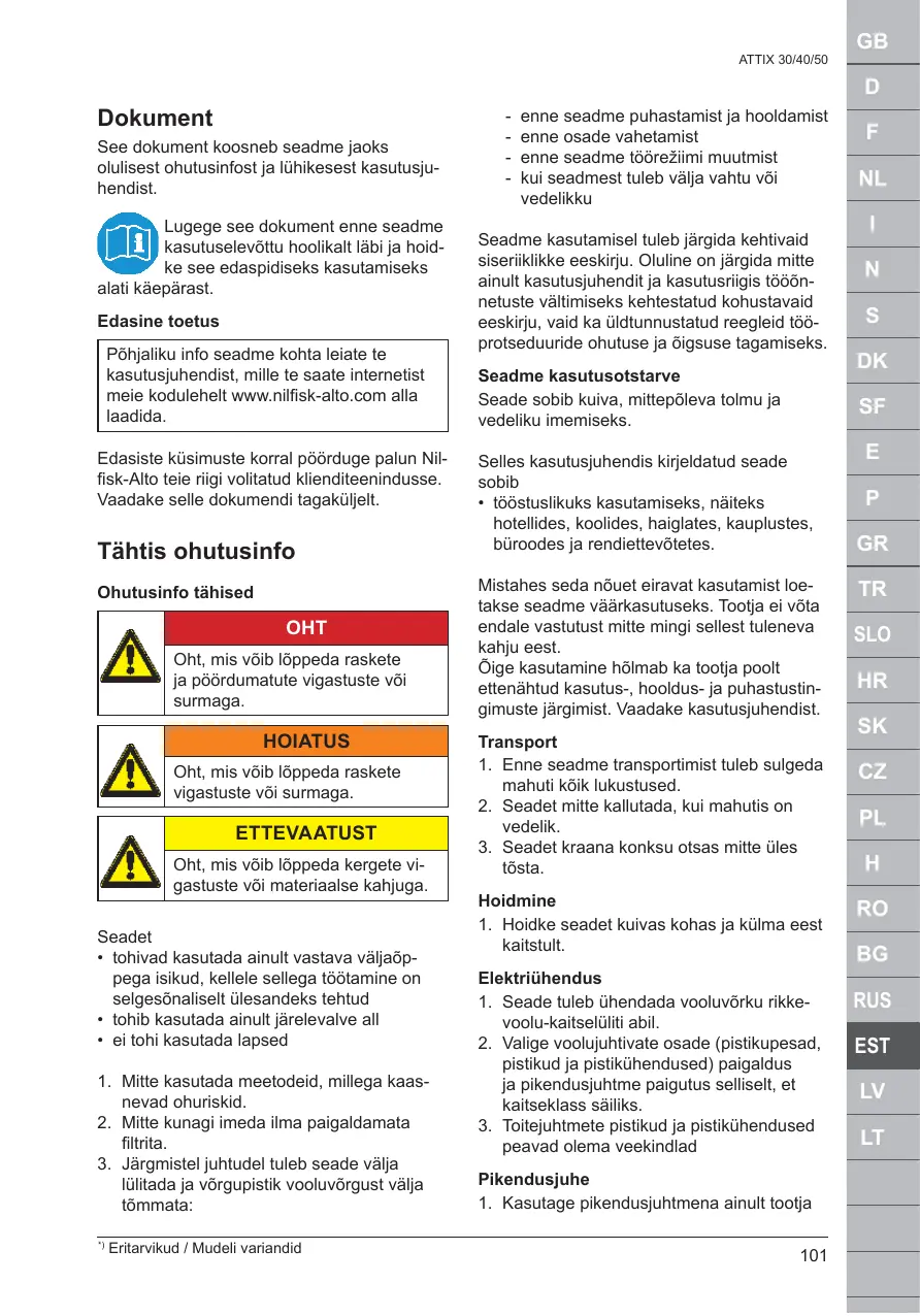 Retrouvez gratuitement la notice de l'appareil ATTIX 30 BATT NILFISK au format PDF.