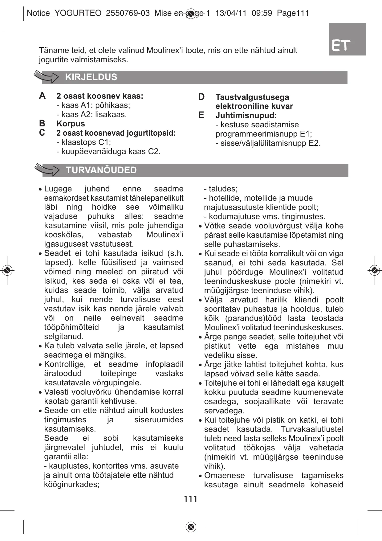 Notice_YOGURTEO_2550769-03_Mise en page 1 13/04/11 09:58 Page34