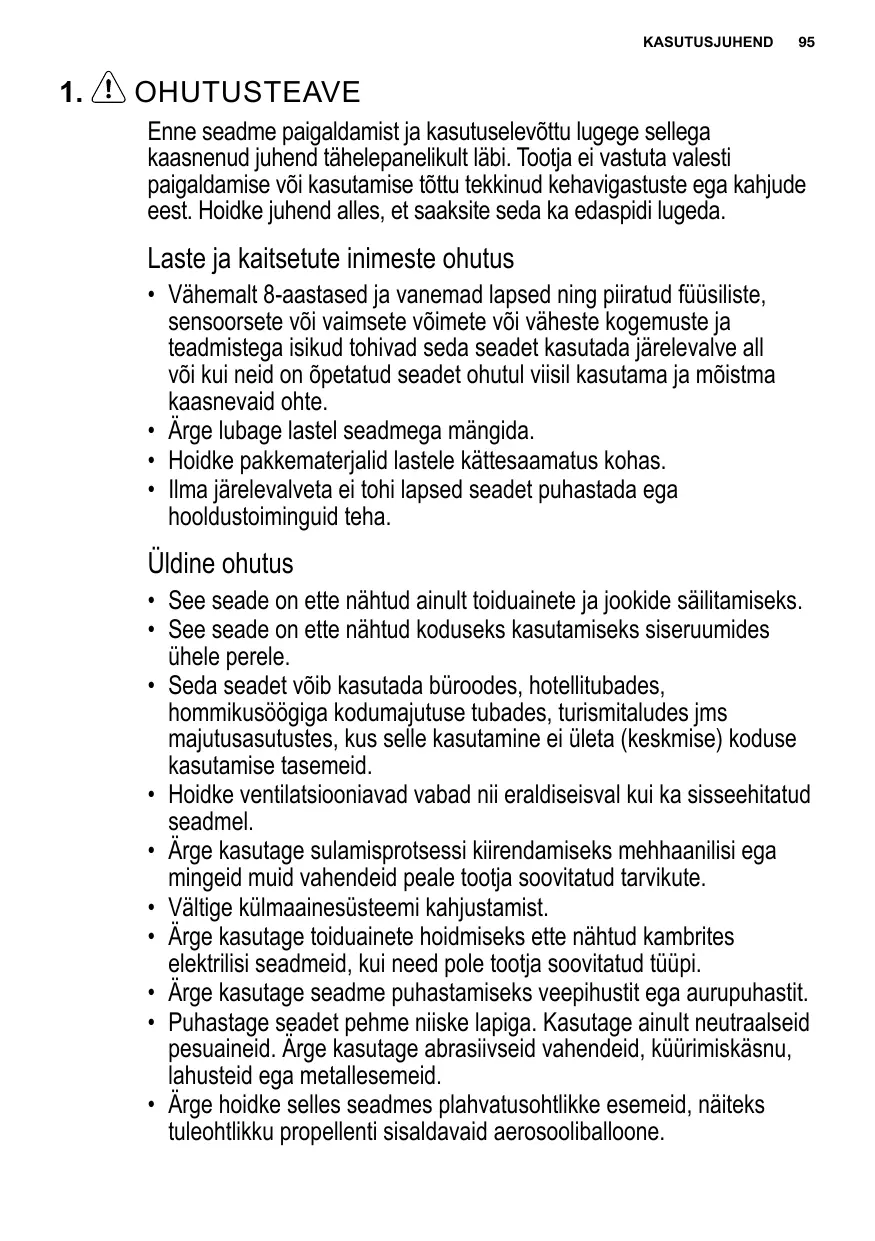 - Ilma järelevalveta ei tohi lapsed seadet puhastada ega hooldustoiminguid teha. Üldine ohutus
