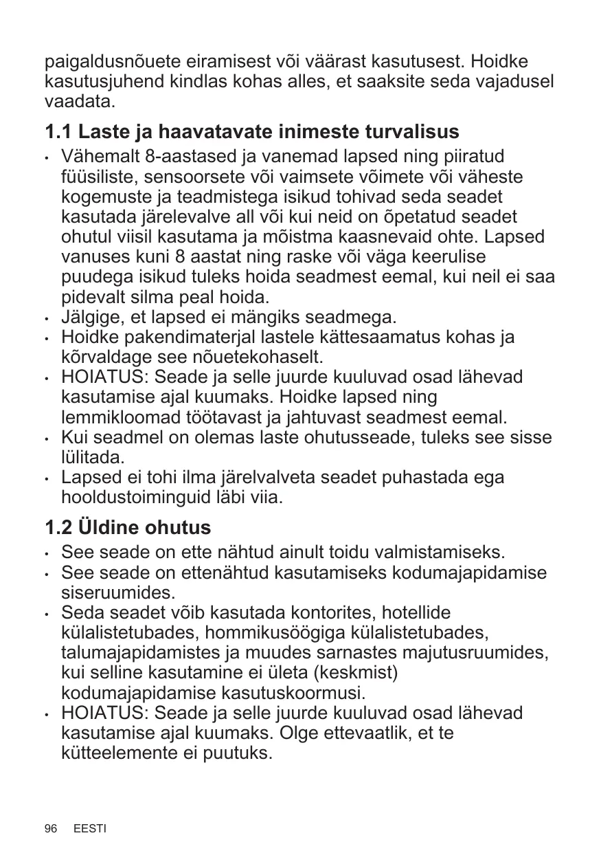 1. INFORMATIONS DE SÉCURITÉ131 2. CONSIGNES DE SÉCURITÉ134 3. INSTALLATION136 4. DESCRIPTION DE L'APPAREIL 139 5. UTILISATION QUOTIDIENNE 140 Ne laissez pas les emballages à la portée des enfants et jetez-les convenablement. AVERTISSEMENT : L'appareil et ses parties accessibles deviennent chauds pendant l'utilisation. Tenez les enfants et les animaux éloignés de l’appareil lorsqu’il est en cours d’utilisation et de refroidissement. Si l'appareil est équipé d'un dispositif de sécurité enfants, nous vous recommandons de l'activer. Le nettoyage et l'entretien par l'usager ne doivent pas être effectués par des enfants sans surveillance.