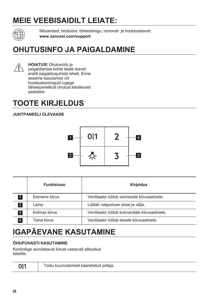 La luz de la campana funciona de forma independiente de otras funciones. Para encender la superficie de cocción, pulse el botón de luz