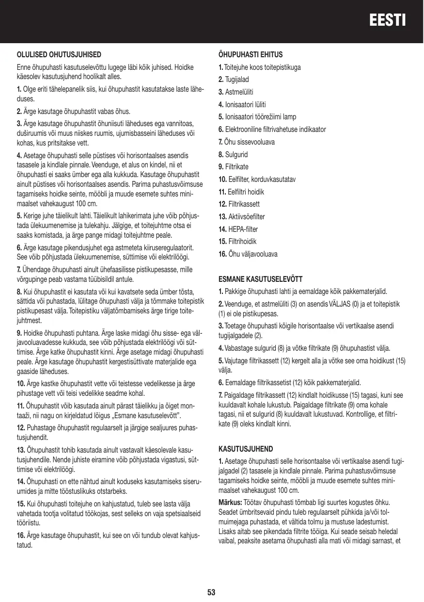 HAP-16200E - Õhupuhasti HONEYWELL - Notice d'utilisation et mode d'emploi gratuit