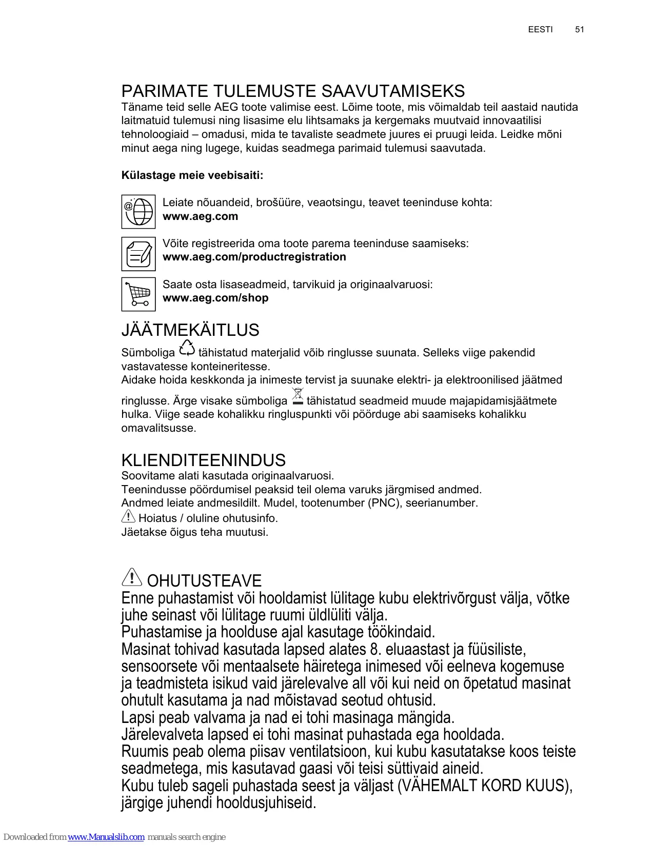 Enregistrer votre produit pour obtenir un meilleur service : www.aeg.com/productregistration Acheter des accessoires, consommables et pièces de rechange d’origine pour votre appareil : www.aeg.com/shop