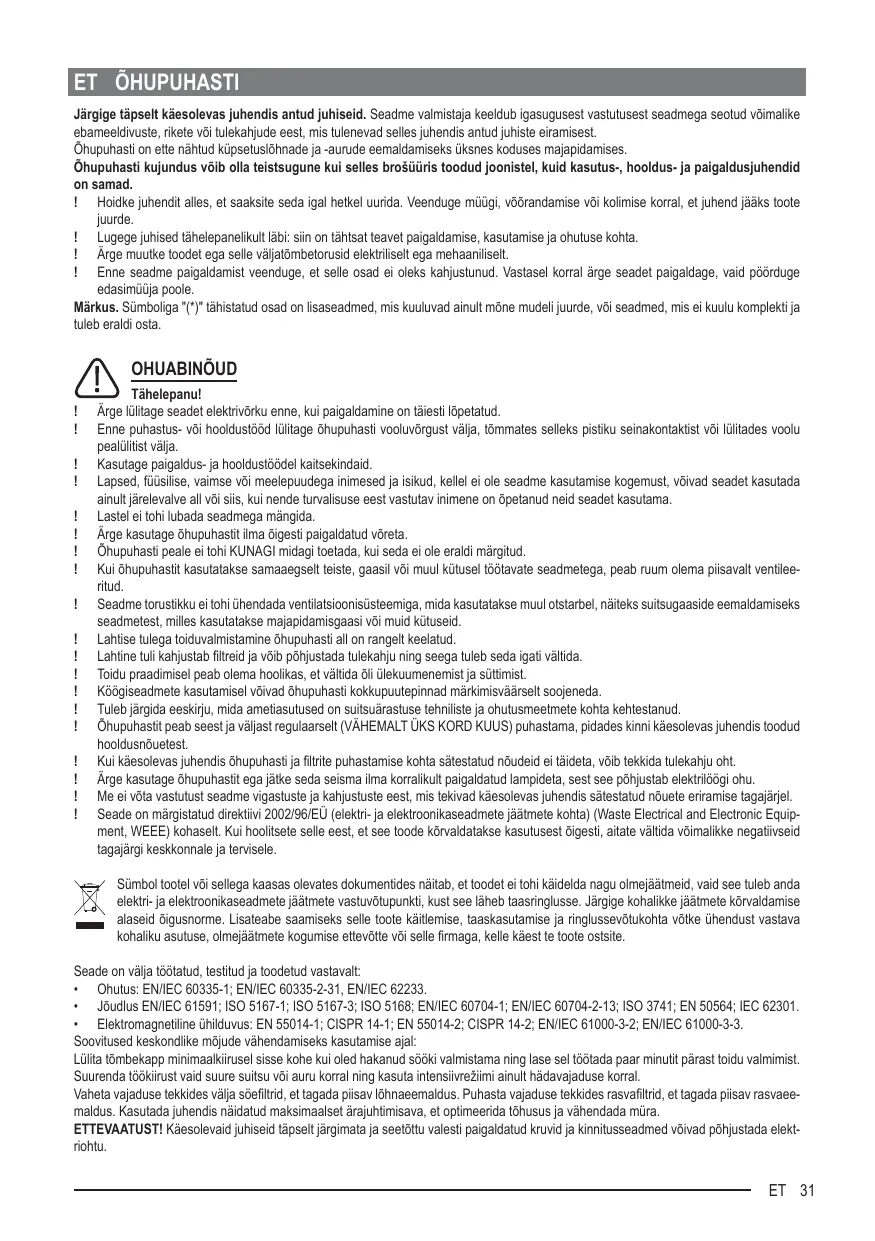 ATTENTION: Il y a risque d’incendie si vous ne respectez pas les instructions concernant le nettoyage de l’appareil et le remplacement ou le nettoyage du filtre. La responsabilité du constructeur ne peut en aucun cas être engagée dans le cas d’un endommagement du moteur ou d’incendie liés à un entretien négligé ou au non respect des consignes de sécurité précédemment mentionnées.