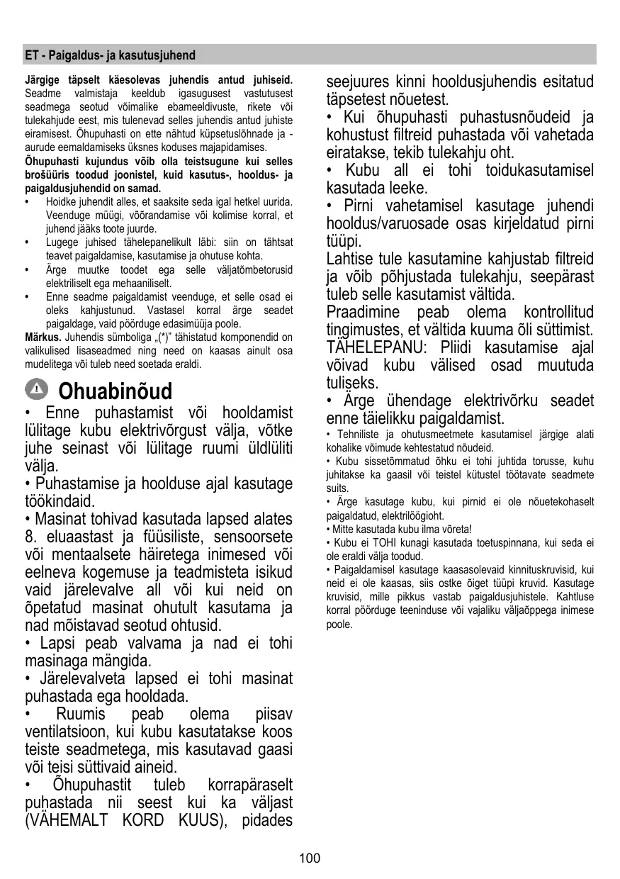 Suivre impérativement les instructions de cette notice. Le constructeur décline toute responsabilité pour tous les inconvénients, dommages ou incendies provoqués à l’appareil et dûs à la non observation des instructions de la présente notice. Cet appareil est destiné à être utilisé dans des applications domestiques et analogues telles que : - des coins cuisines réservés au personnel dans des magasins, bureaux et autres environnements professionnels ; - des fermes ; l’utilisation par les clients des hôtels, motels et autres environnements à caractère résidentiel ; - des environnements du type chambre d’hôtes.
