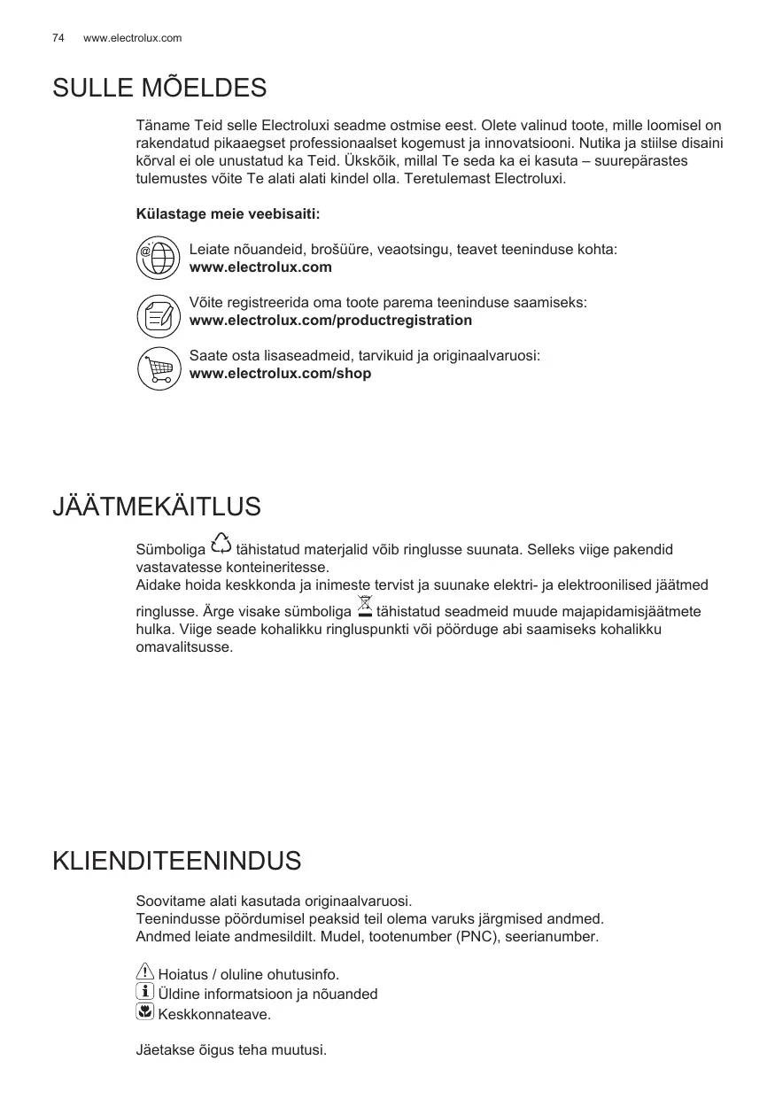 Téléchargez la notice de votre Sisseehitatav ahi au format PDF gratuitement ! Retrouvez votre notice EFBP90681X - ELECTROLUX et reprennez votre appareil électronique en main. Sur cette page sont publiés tous les documents nécessaires à l'utilisation de votre appareil EFBP90681X de la marque ELECTROLUX.