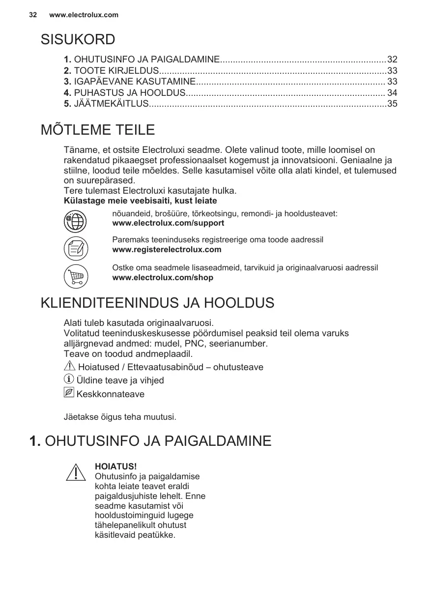 Enregistrer votre produit pour un meilleur service : www.registerelectrolux.com Acheter des accessoires, consommables et pièces de rechange d’origine pour votre appareil : www.electrolux.com/shop