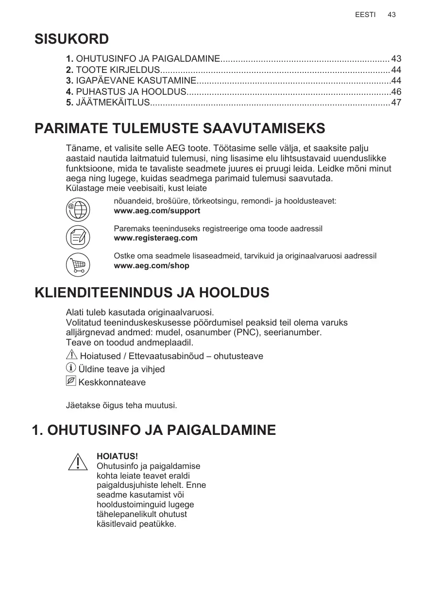 Enregistrer votre produit pour un meilleur service : www.registeraeg.com Acheter des accessoires, consommables et pièces de rechange d’origine pour votre appareil : www.aeg.com/shop