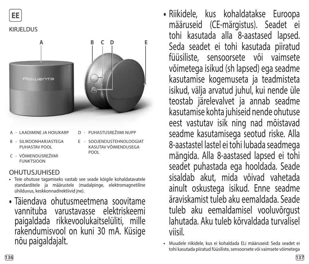 V8530 - Soins ROWENTA - Notice d'utilisation et mode d'emploi gratuit