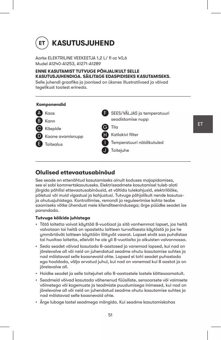 Téléchargez la notice de votre Koduaparaadid au format PDF gratuitement ! Retrouvez votre notice BouilloireNoire - AARKE et reprennez votre appareil électronique en main. Sur cette page sont publiés tous les documents nécessaires à l'utilisation de votre appareil BouilloireNoire de la marque AARKE.