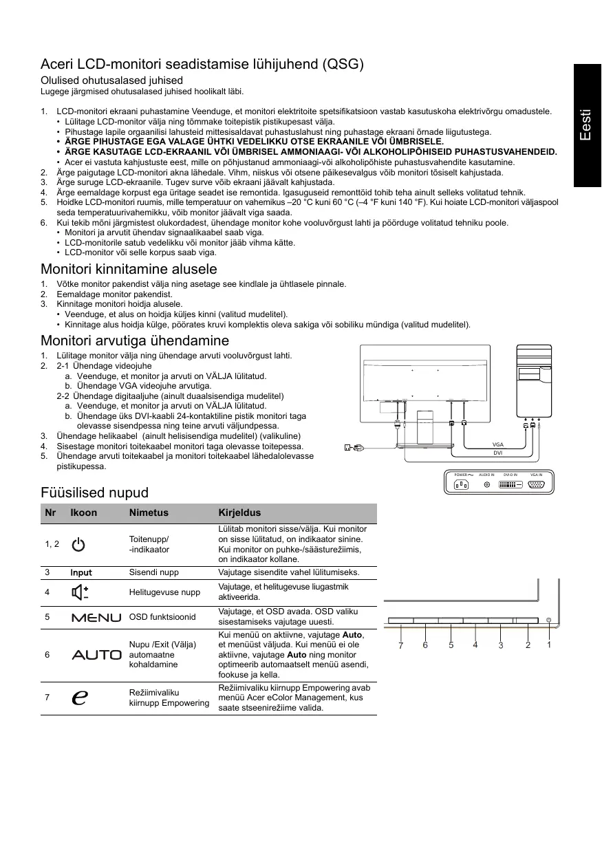 Téléchargez la notice de votre Arvutiekraan au format PDF gratuitement ! Retrouvez votre notice VA190HQ - ACER et reprennez votre appareil électronique en main. Sur cette page sont publiés tous les documents nécessaires à l'utilisation de votre appareil VA190HQ de la marque ACER.