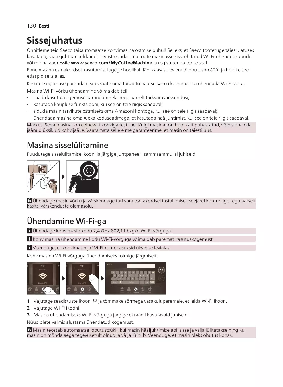 Las cafeteras espresso totalmente automáticas SM6685, SM6682 y SM6680 están equipadas con un módulo Wi-Fi de 2,4 GHz 802,11 b/g/n (canales 1..13). Potencia de transmisión máxima <100 mW (20 dBm).