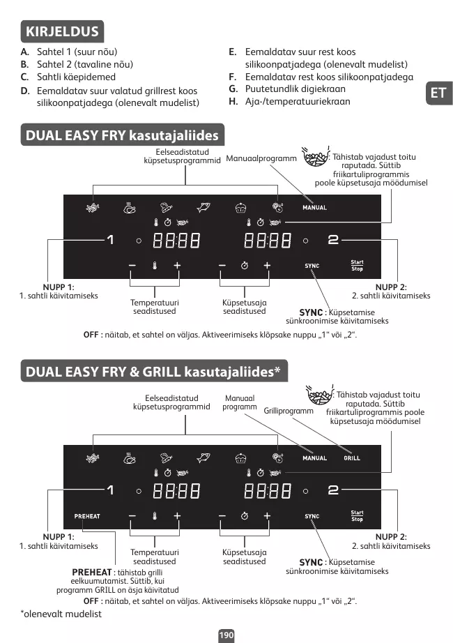 ET DUAL EASY FRY kasutajaliides Eelseadistatud küpsetusprogrammid Manuaalprogramm