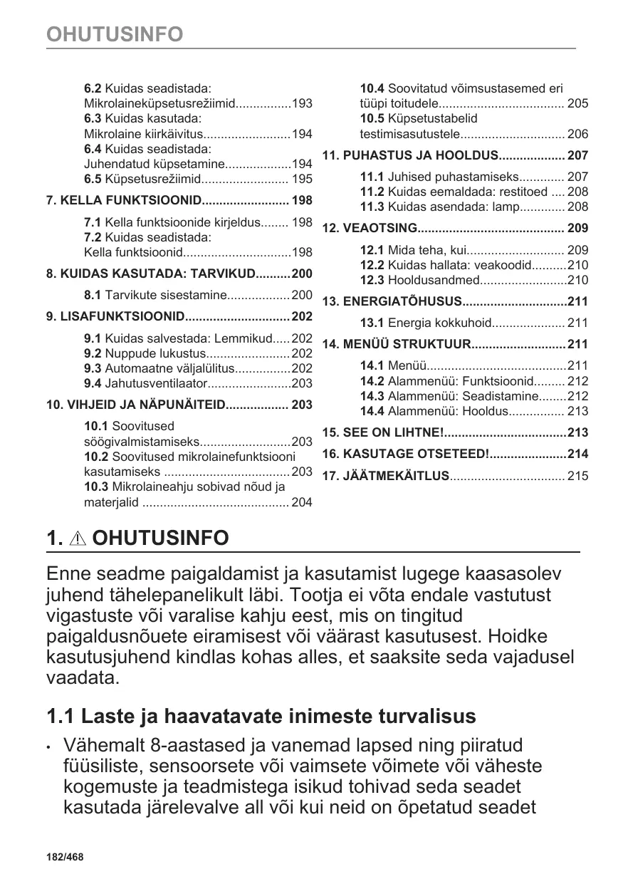 1. INFORMATION SUR LA SÉCURITÉ217 3. DESCRIPTION DE L'APPAREIL225 1.1 Sécurité des enfants et des personnes vulnérables218 1.2 Sécurité générale218