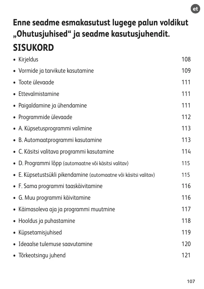 A. Küpsetusprogrammi valimine