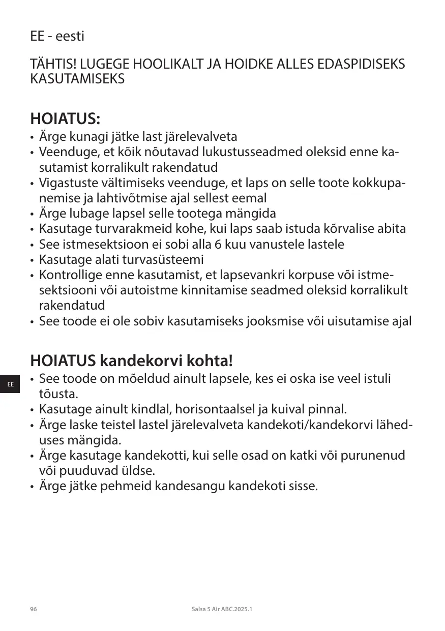 Retrouvez gratuitement la notice de l'appareil SALSA 5 Air avec Siege Auto ABC DESIGN au format PDF.