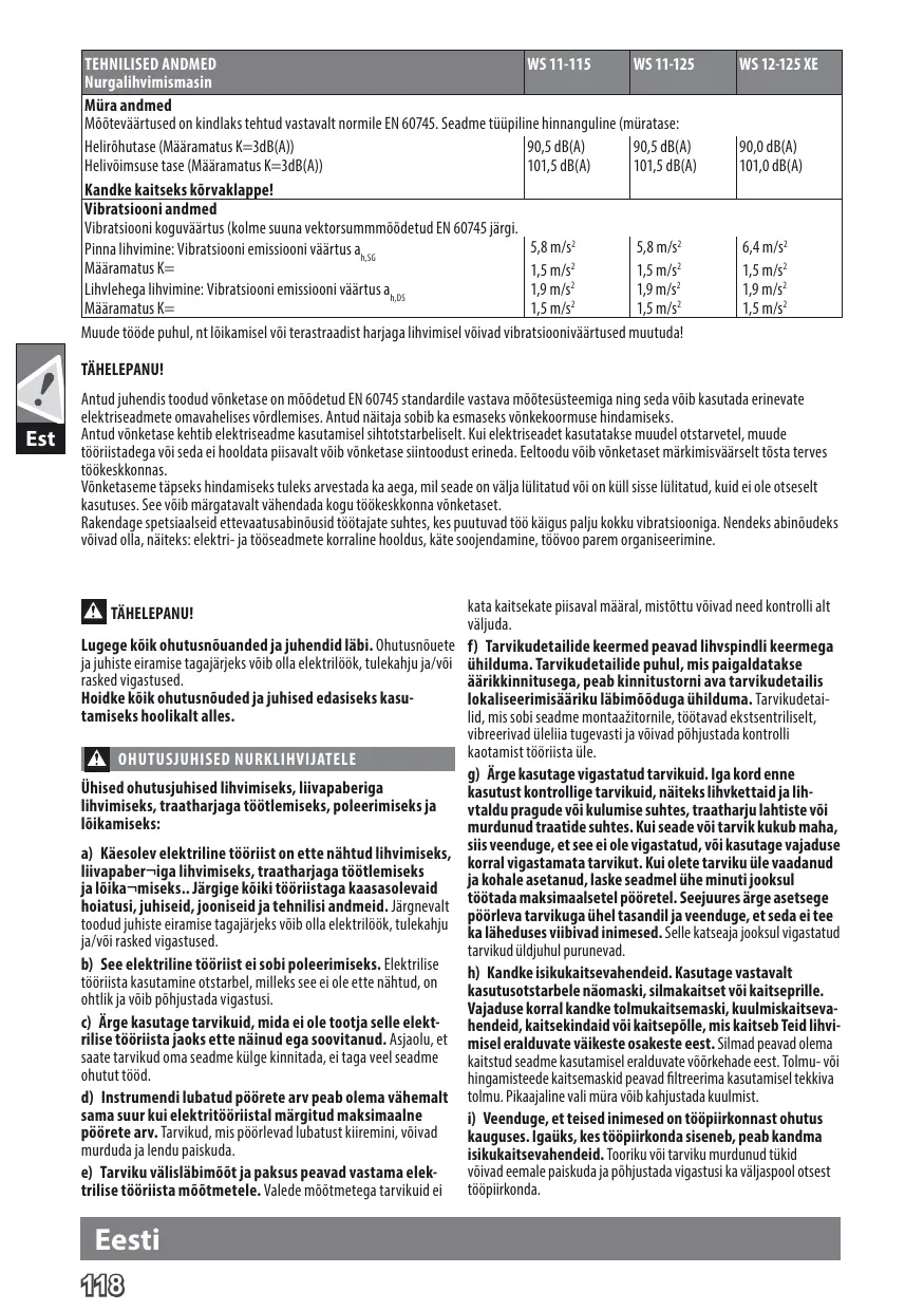 Modèle : WS 9-100, WS 9-115, WS 9-125, WS 11-115, WS 11-125, WS 12-125 XE