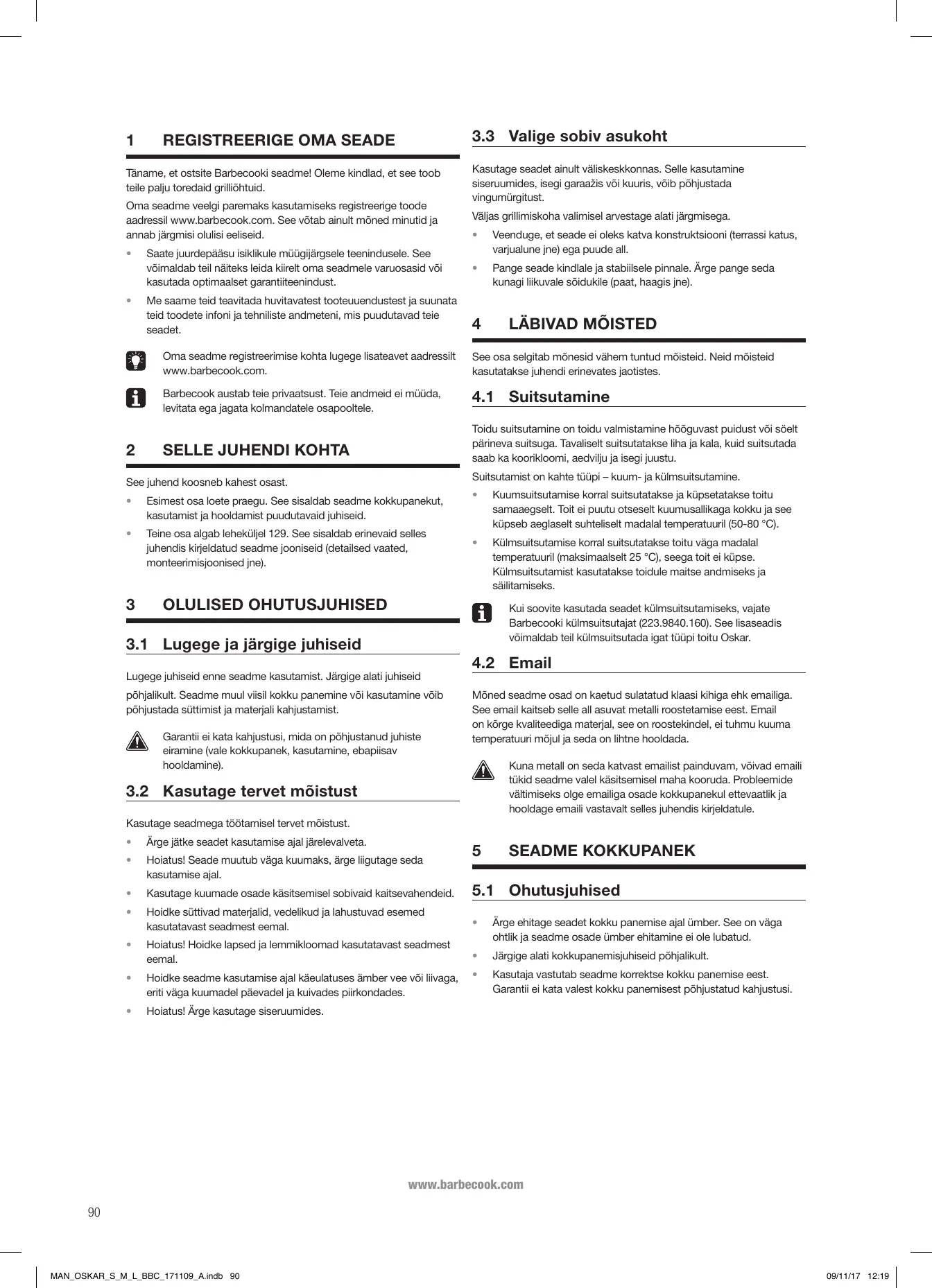 Ce Oma seadme registreerimise kohta lugege lisateavet aadressilt www. barbecook.com.