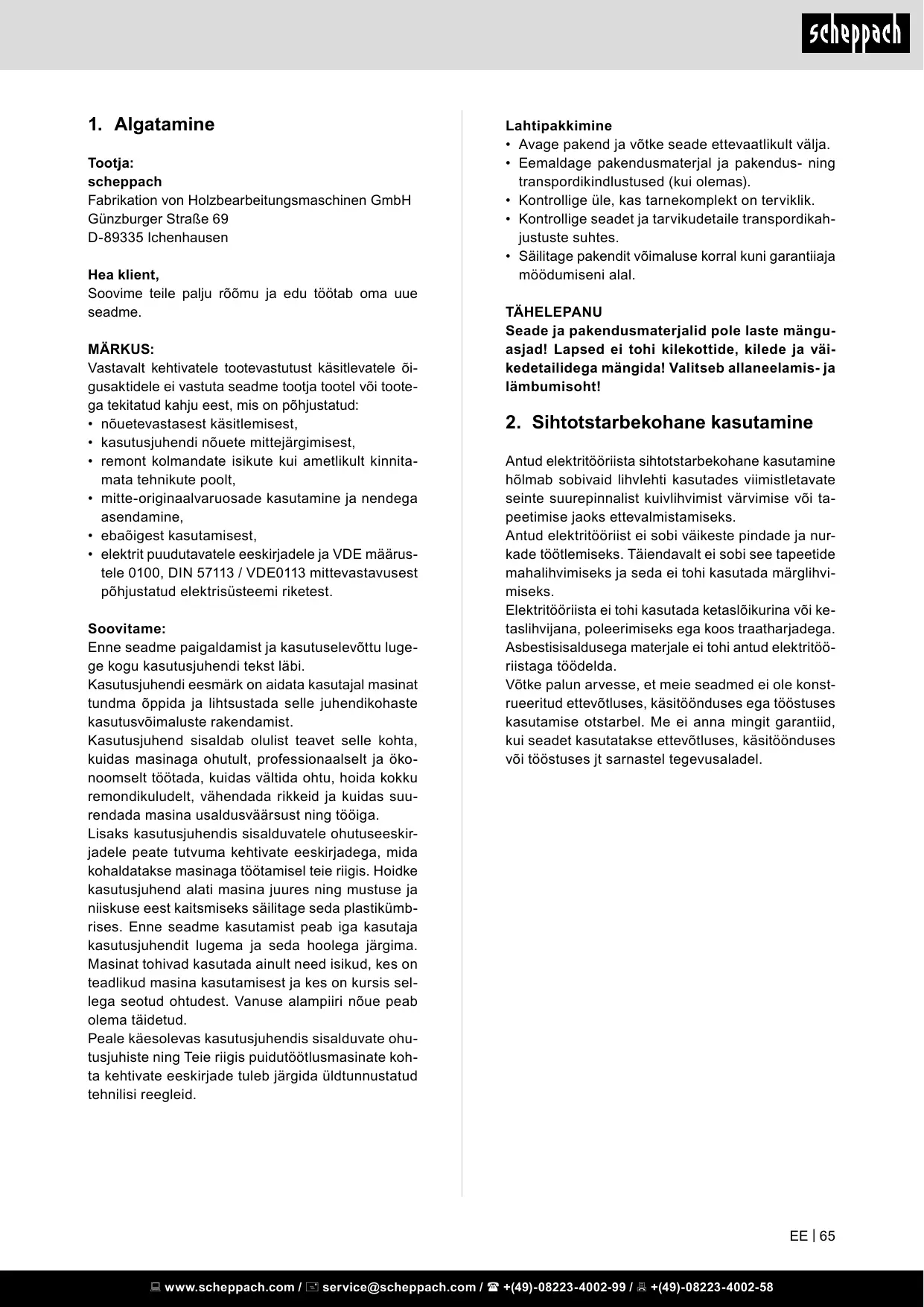 Retrouvez gratuitement la notice de l'appareil DS930 SCHEPPACH au format PDF.