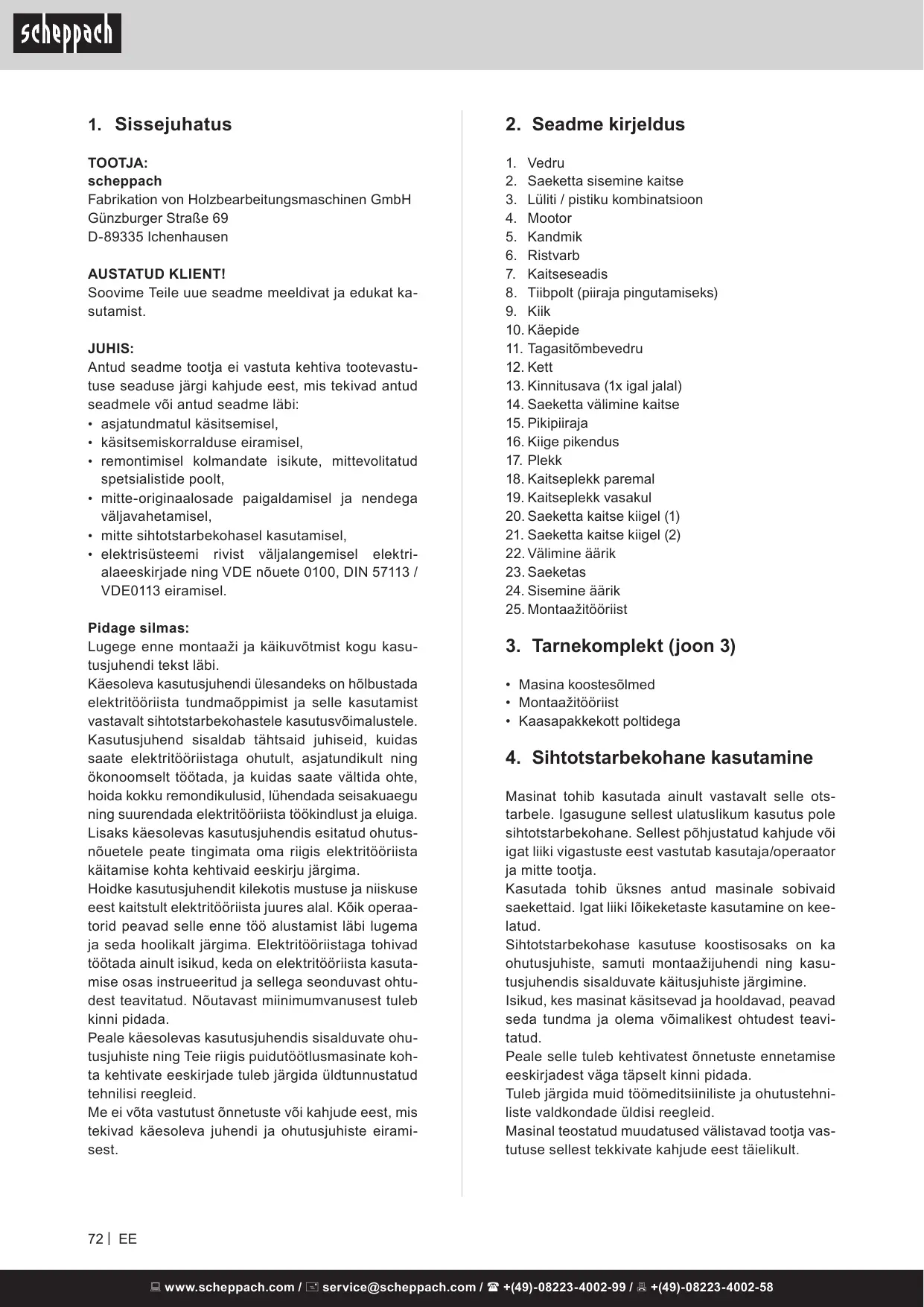 www.scheppach.com / E' service@scheppach.com / & +(49)-08223-4002-99 / & +(49)-08223-4002-58