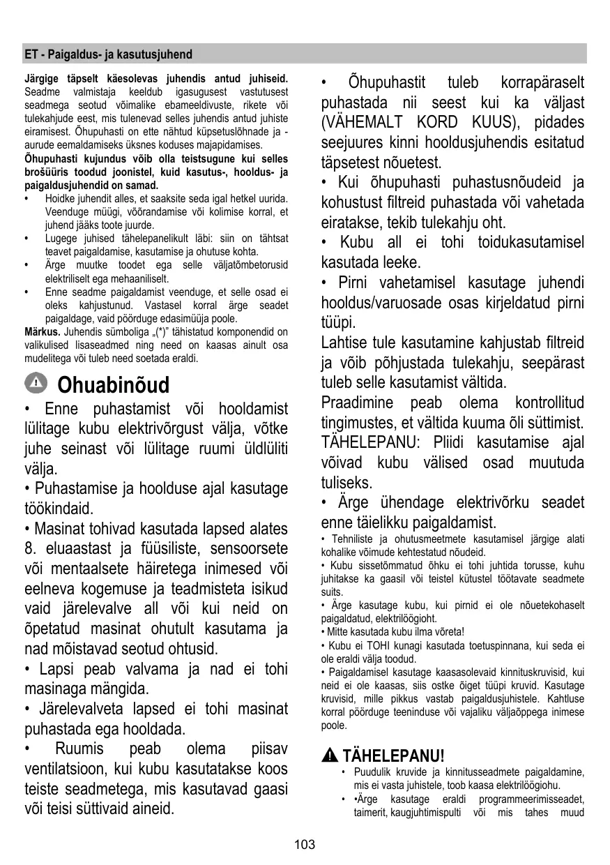 Téléchargez la notice de votre Köögituulutus au format PDF gratuitement ! Retrouvez votre notice PRF0032793C - ELICA et reprennez votre appareil électronique en main. Sur cette page sont publiés tous les documents nécessaires à l'utilisation de votre appareil PRF0032793C de la marque ELICA.