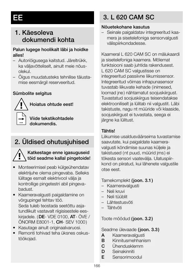 Téléchargez la notice de votre Järelevalvekaamera au format PDF gratuitement ! Retrouvez votre notice L620 - STEINEL et reprennez votre appareil électronique en main. Sur cette page sont publiés tous les documents nécessaires à l'utilisation de votre appareil L620 de la marque STEINEL.