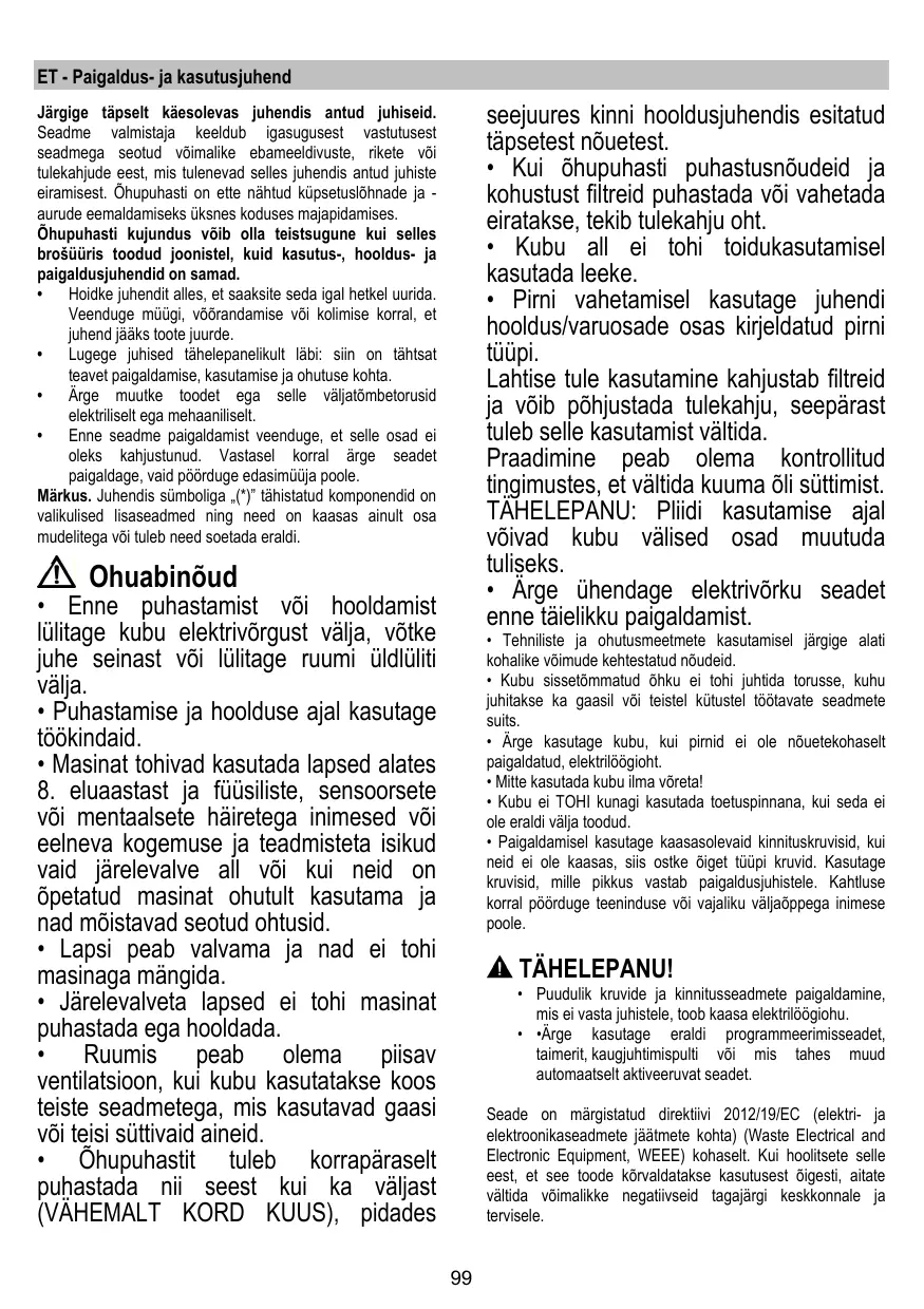 + De afgezogen lucht mag niet worden afgevoerd naar een uïtvoer voor dampen van apparaten die op gas of andere brandstoffen werken.