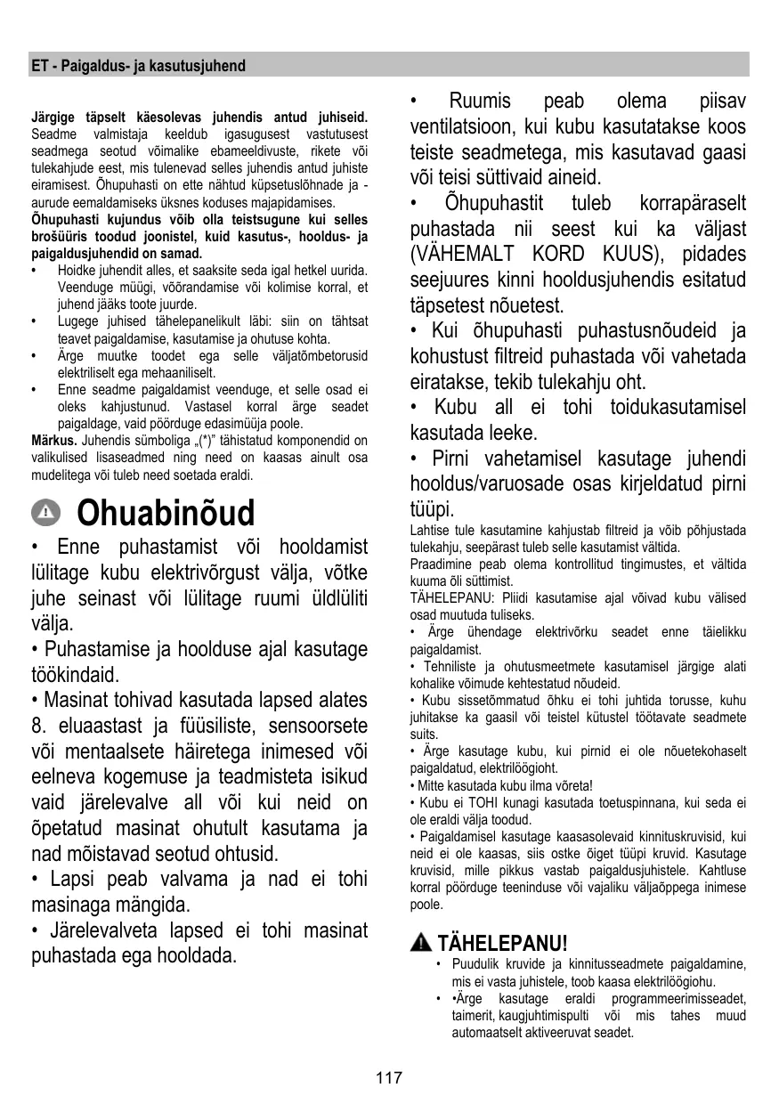 Téléchargez la notice de votre Köögituulutus au format PDF gratuitement ! Retrouvez votre notice PRF0023893B - ELICA et reprennez votre appareil électronique en main. Sur cette page sont publiés tous les documents nécessaires à l'utilisation de votre appareil PRF0023893B de la marque ELICA.