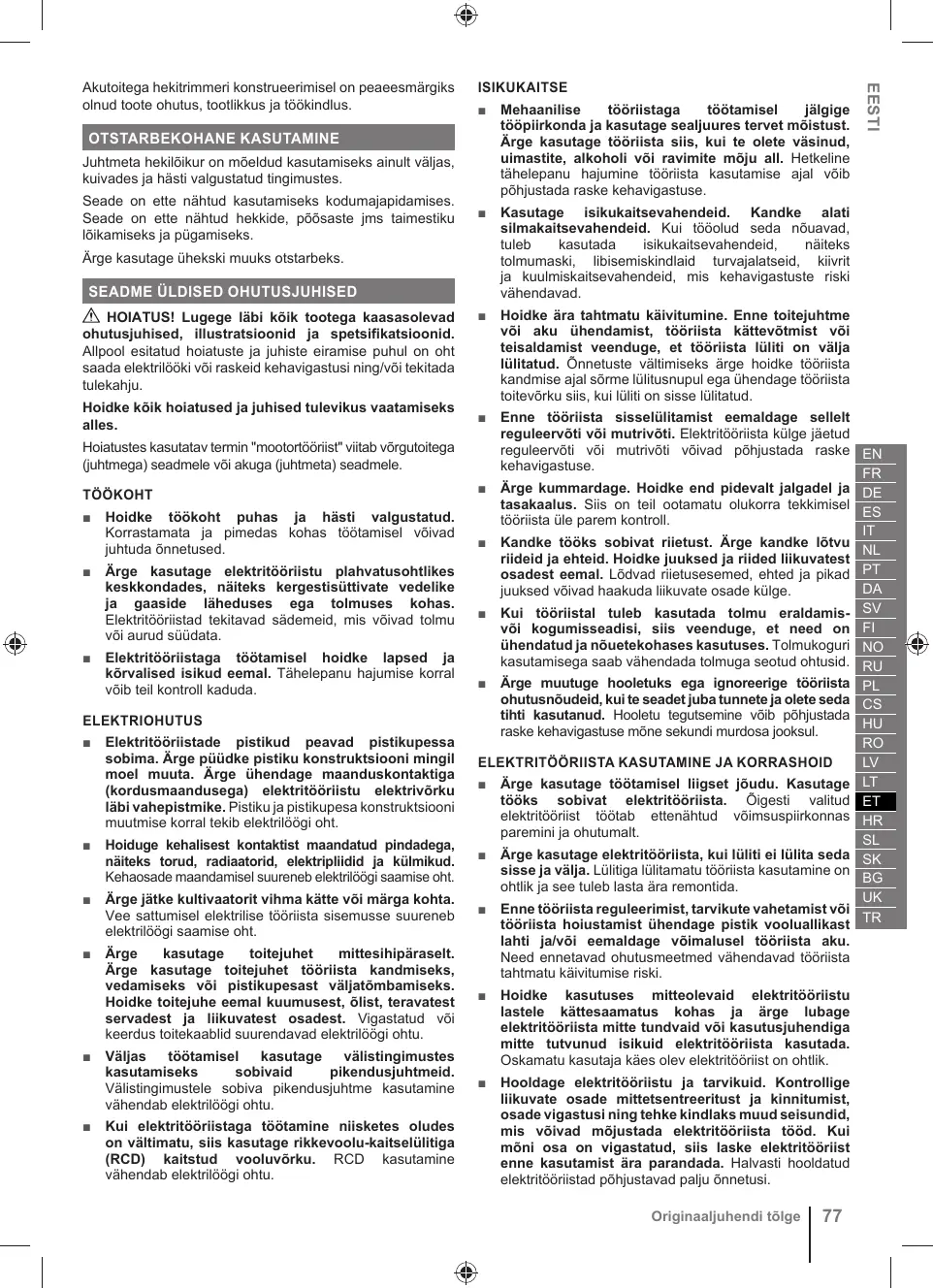 EN 62841-1; EN 62841-4-2)
