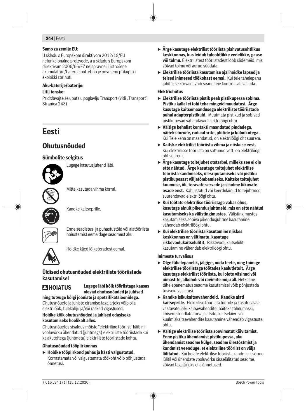 Utiliser l'outil électrique, les accessoires et les lames etc., conformément à ces instructions, en tenant compte des conditions de travail et du travail à réali- ser. L'utilisation de l'outil électrique pour des opérations différentes de celles prévues peut donner lieu à des situa- tions dangereuses.