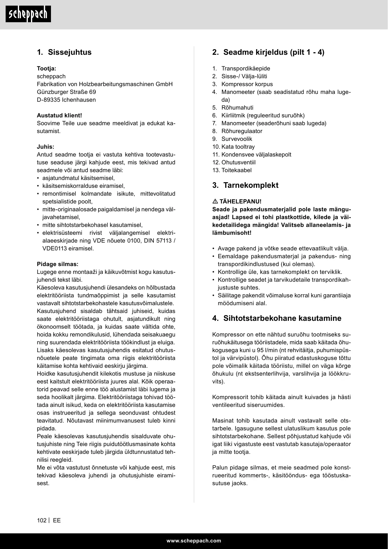 Retrouvez gratuitement la notice de l'appareil AIRCASE SCHEPPACH au format PDF.