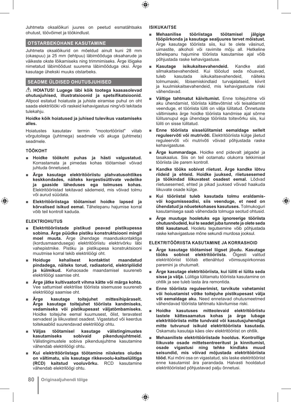 = Utiliser l'outil, les accessoires et les lames et conformément à ces instructions, en tenant compte des conditions de travail et du travail à réaliser.