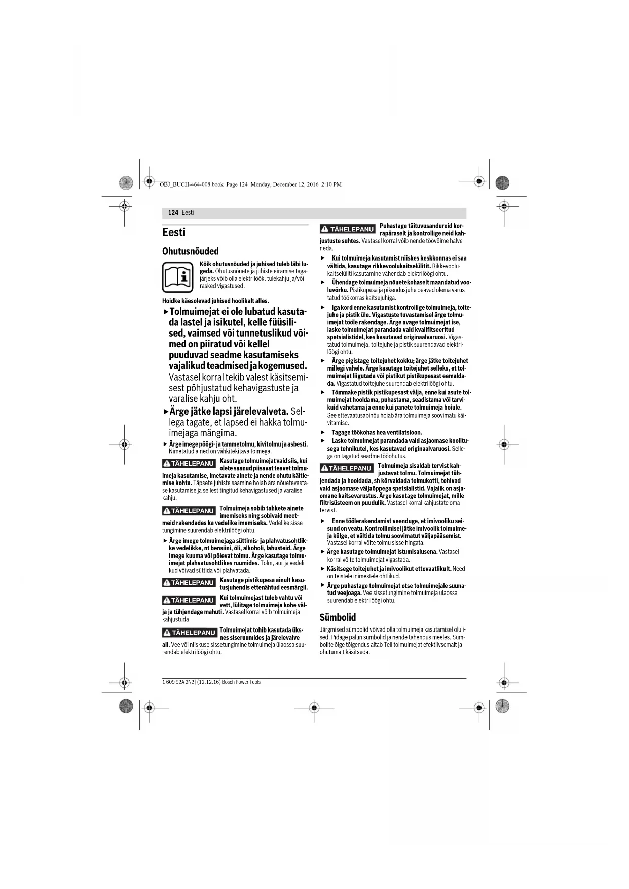TÄHELEPANU TÄHELEPANU TÄHELEPANU TÄHELEPANU TÄHELEPANU TÄHELEPANU TÄHELEPANU OBJ_BUCH-464-008.book Page 124 Monday, December 12, 2016 2:10 PMEesti | 125 Bosch Power Tools 1 609 92A 2N2 | (12.12.16) Seadme ja selle funktsioonide kirjel-