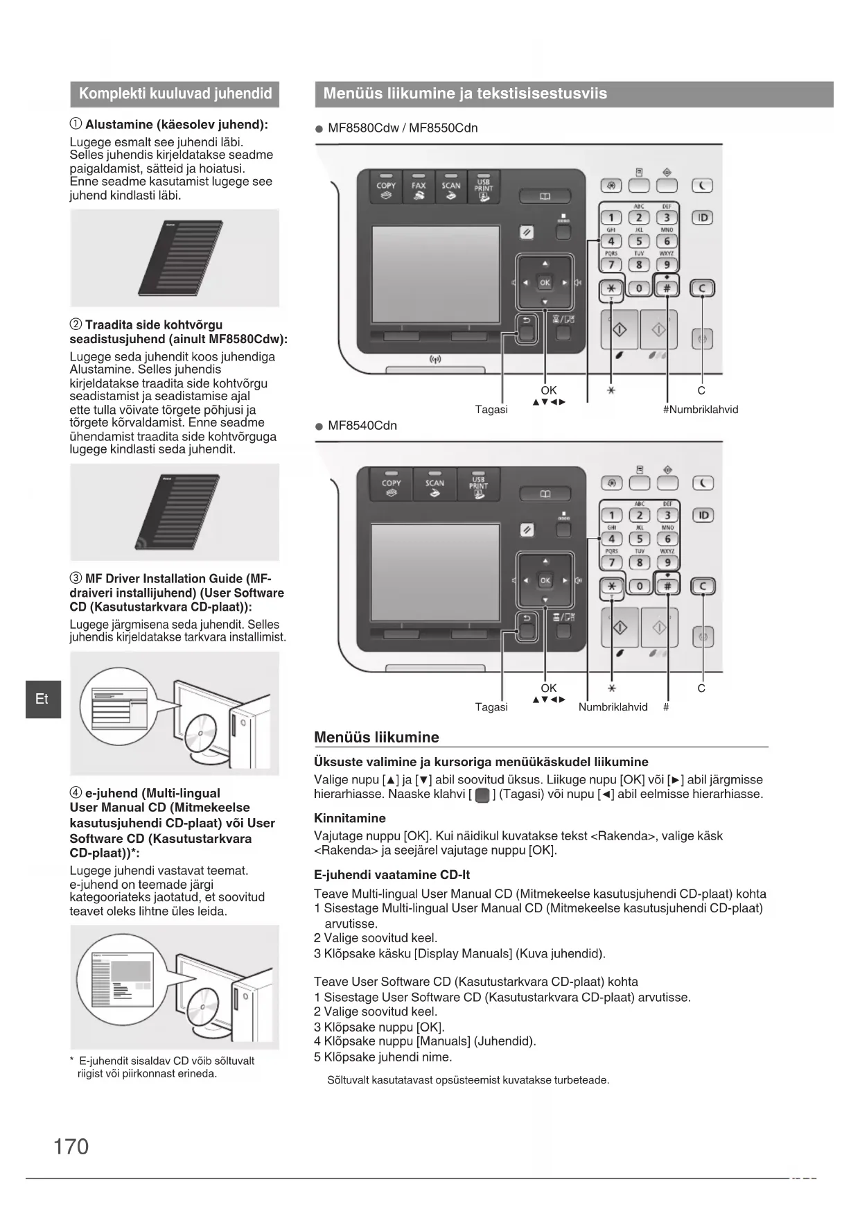 teavet oleks lihtne üles leida. * E-juhendit sisaldav CD võib sõltuvalt riigist või piirkonnast erineda. Menüüs liikumine ja tekstisisestusviis