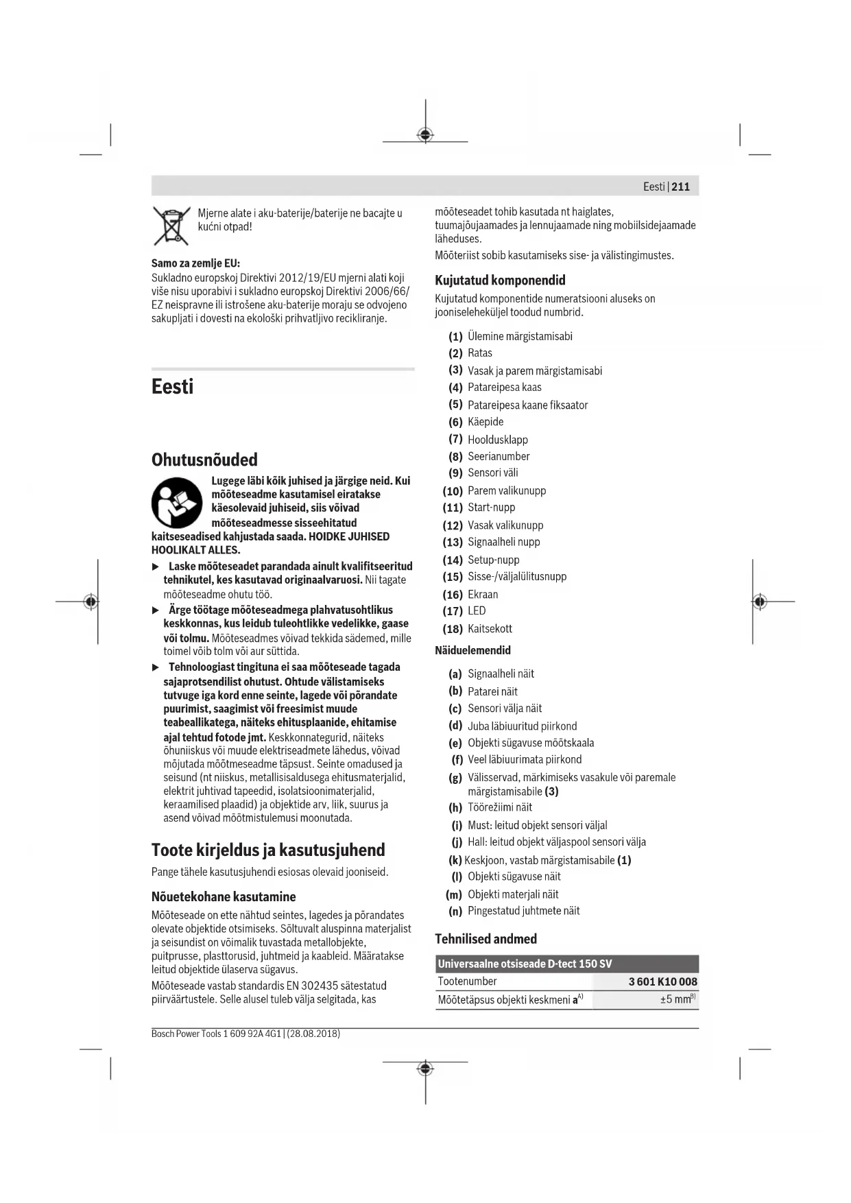 Käesolevaga deklareerib Robert Bosch Power Tools GmbH, et käesolev raadioseadme tüüp D‑tect150SV vastab di-