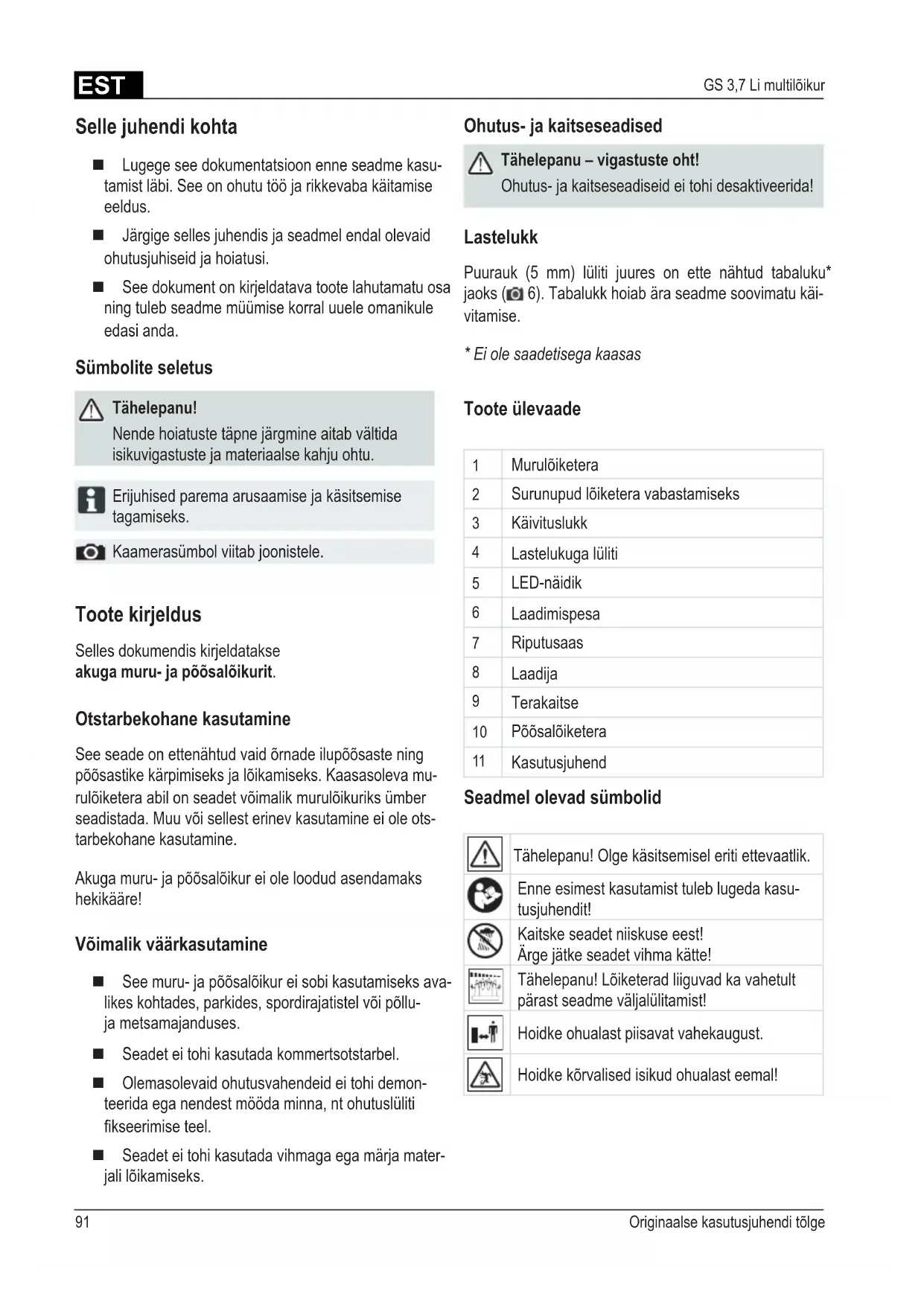 Ohutus- ja kaitseseadiseid ei tohi desaktiveerida!