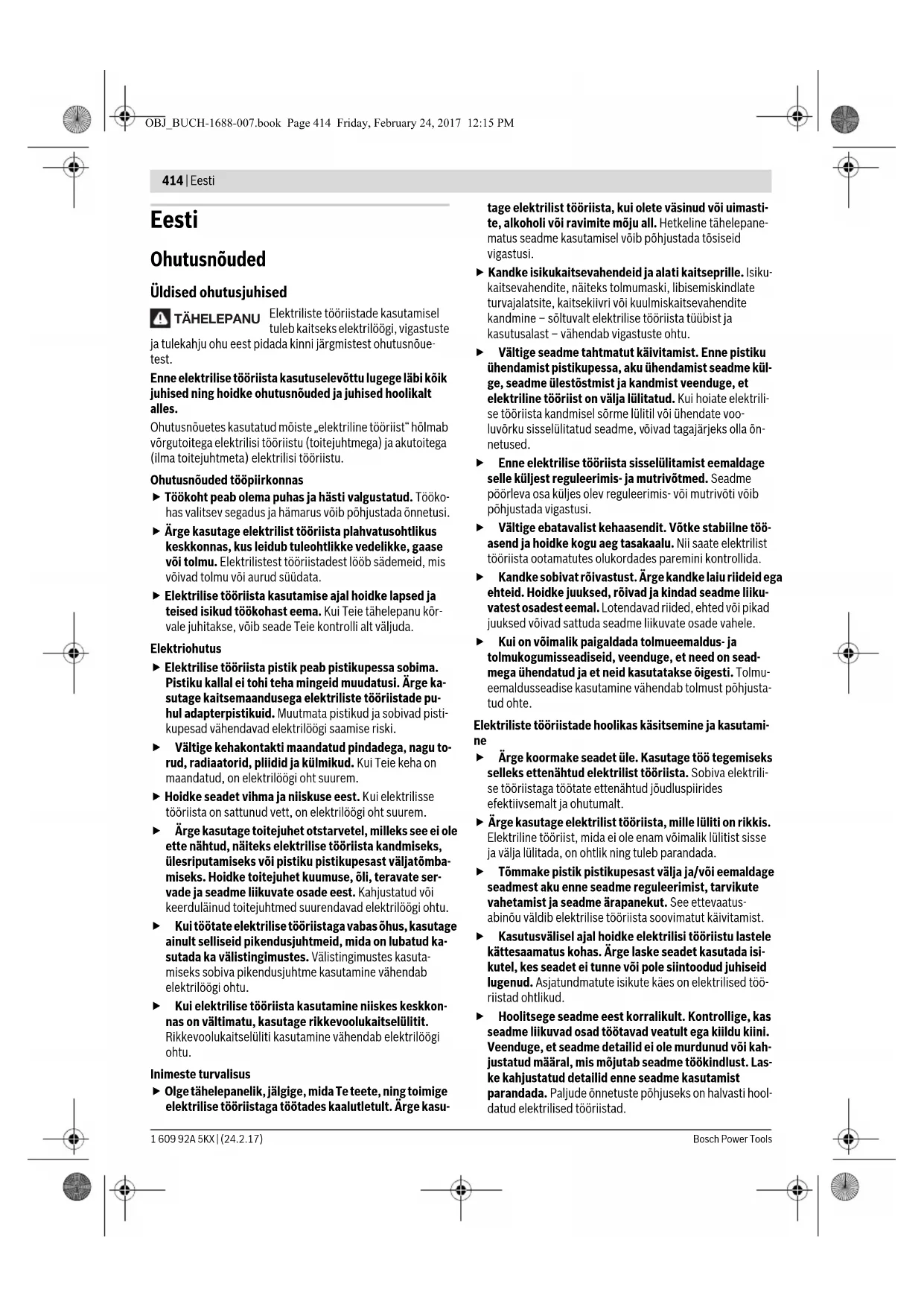 Elektriliste tööriistade kasutamisel