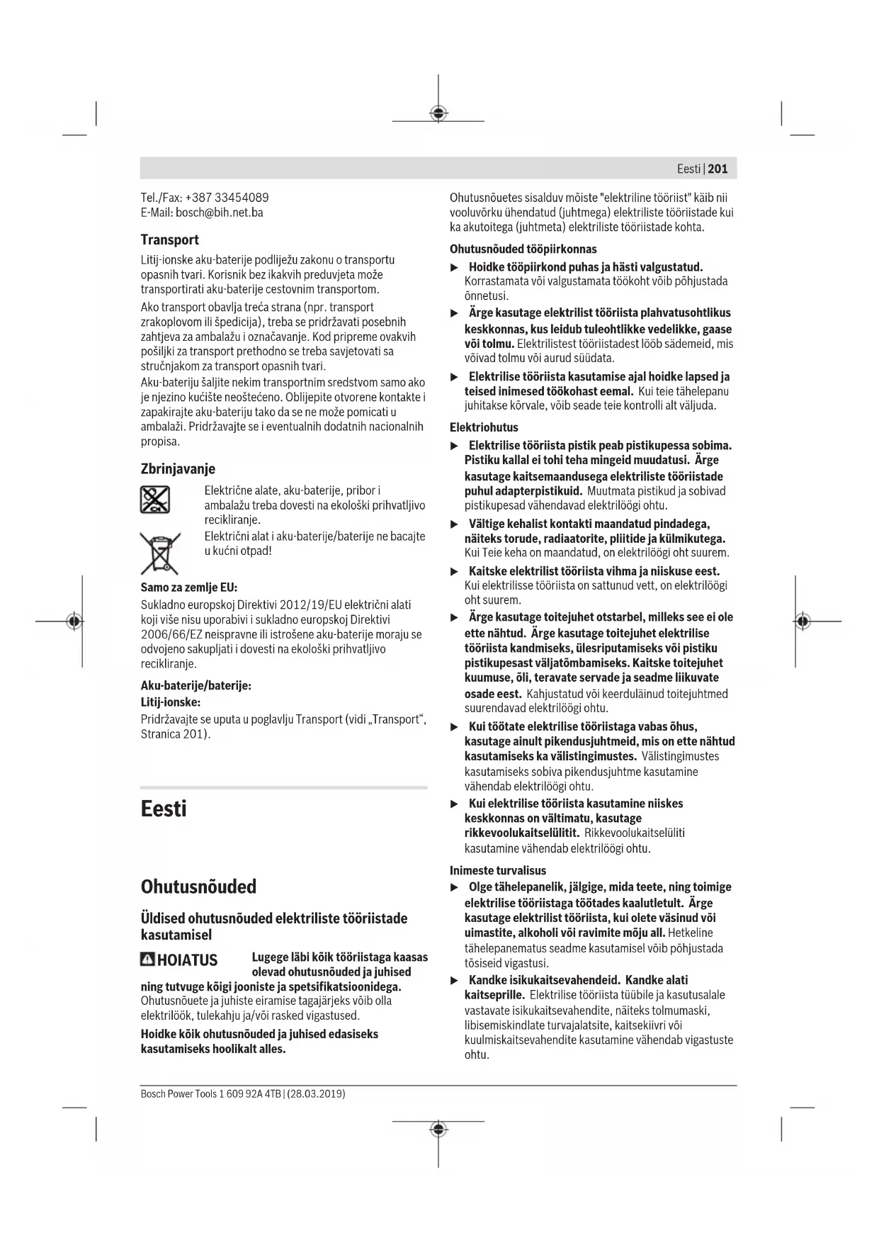 ohtu. Bosch Power Tools 1 609 92A 4TB | (28.03.2019)202 | Eesti