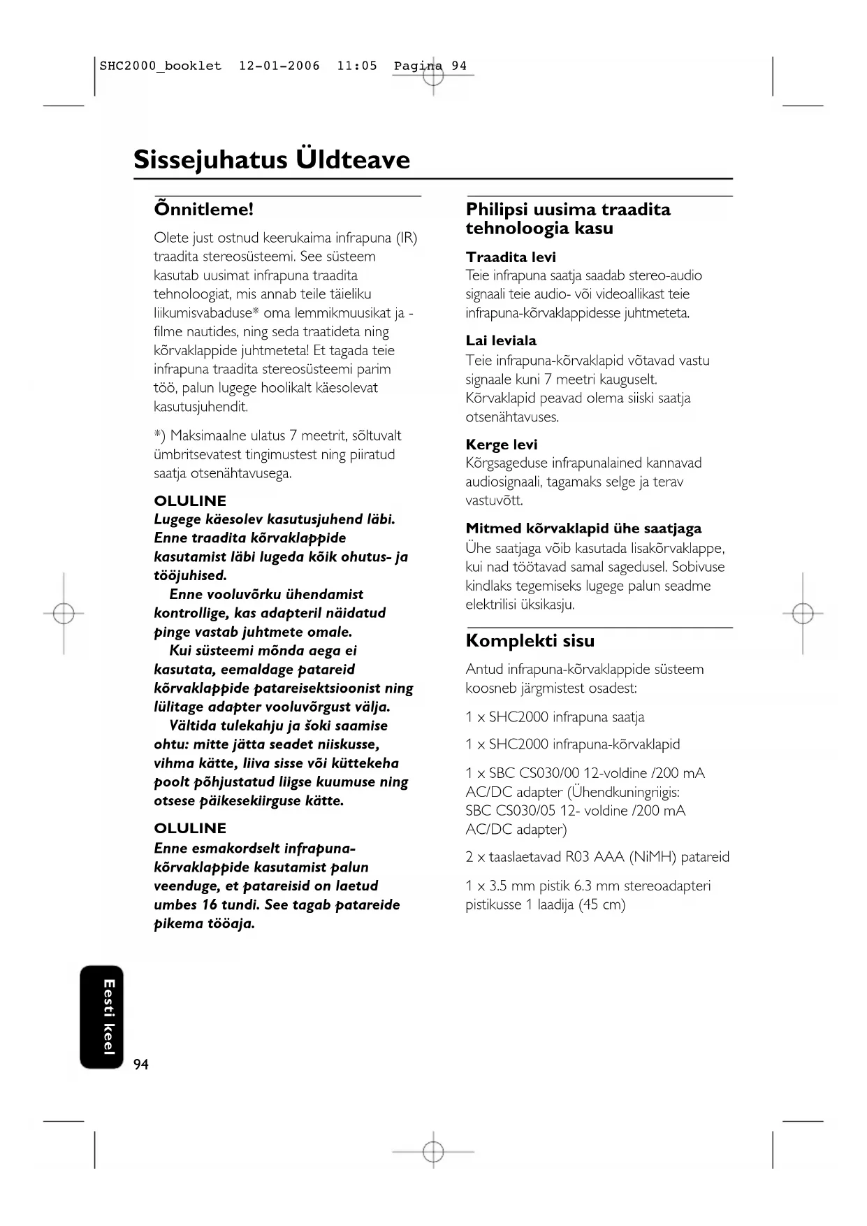 SHC2000_booklet 12-01-2006 11:05 Pagina 98Hooldus – Kui kõrvaklappe mõnda aega ei kasutata, eemaldage